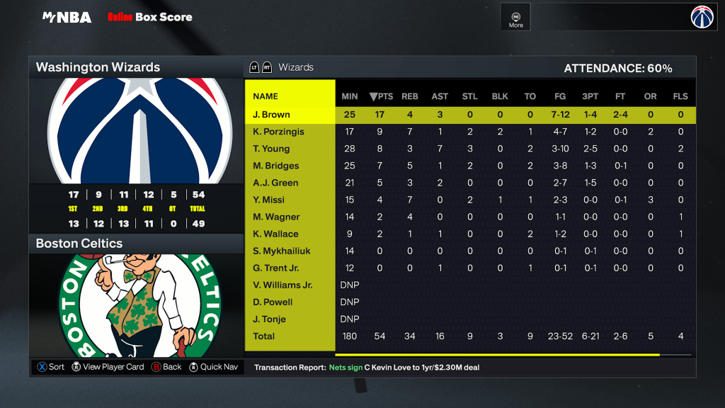 C. Bryant 11 2 1 1 1/2 0/1 0/0 0 0 1 2.0