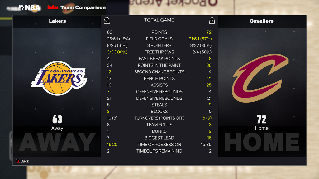 Los Angeles Lakers | Giocatore | MIN | PTS | REB | AST | FG | 3PT | FT | STL | BLK | TO | MVP |