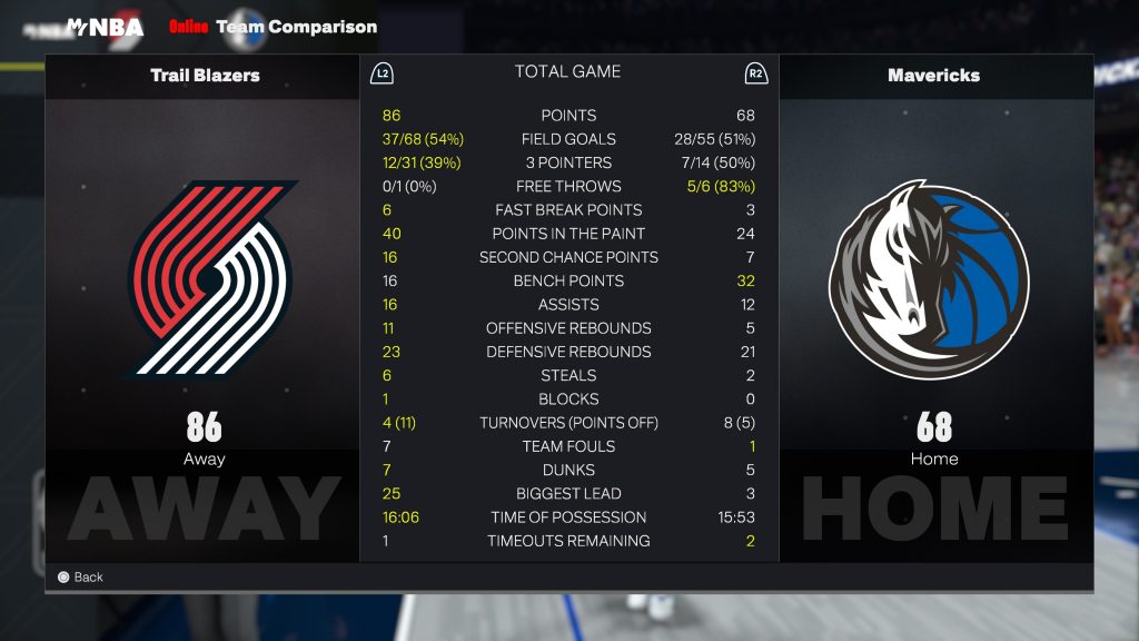 | L. Doncic | 22 | 22 | 7 | 7 | 9/20 | 4/11 | 0/0 | 1 | 0 | 1 | 30.3 |