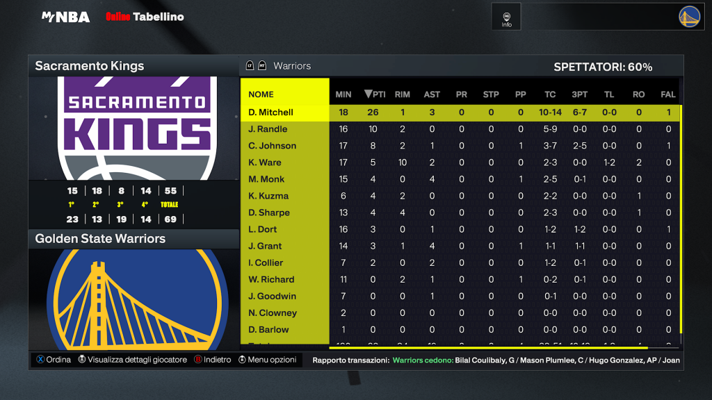 Golden State Warriors | Giocatore | MIN | PTS | REB | AST | FG | 3PT | FT | STL | BLK | TO | MVP |