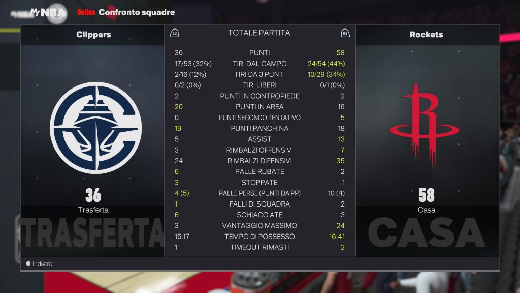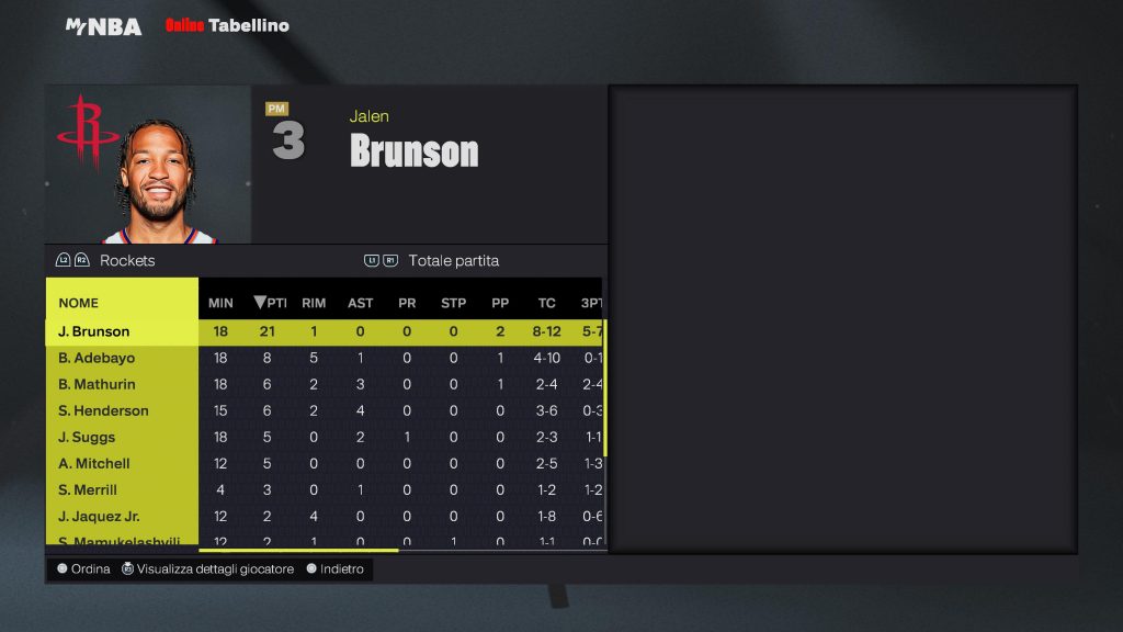 Houston Rockets | Giocatore | MIN | PTS | REB | AST | FG | 3PT | FT | STL | BLK | TO | MVP |