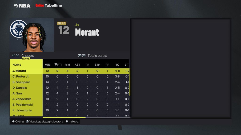 Los Angeles Clippers | Giocatore | MIN | PTS | REB | AST | FG | 3PT | FT | STL | BLK | TO | MVP |