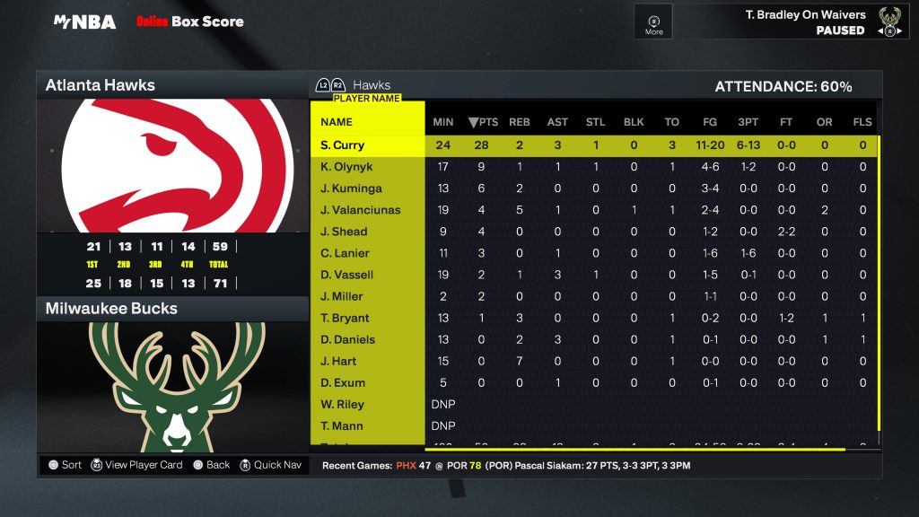 S. Curry 24 28 2 3 11/20 6/13 0/0 1 0 3 27.9