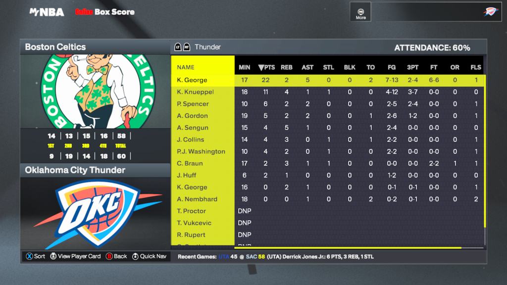 | K. Knueppel | 18 | 11 | 4 | 1 | 4/12 | 3/7 | 0/0 | 1 | 0 | 0 | 13.3 |