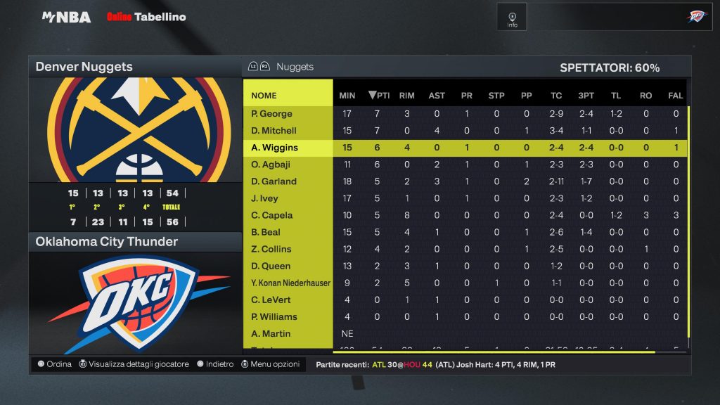 | A. Wiggins | 15 | 6 | 4 | 0 | 2/4 | 2/4 | 0/0 | 1 | 0 | 0 | 10.1 |
