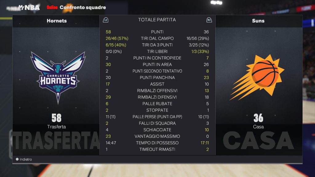 Charlotte Hornets | Giocatore | MIN | PTS | REB | AST | FG | 3PT | FT | STL | BLK | TO | MVP |