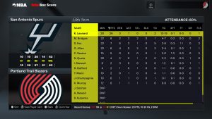 | J. Poeltl | 13 | 6 | 7 | 2 | 3/4 | 0/0 | 0/0 | 0 | 0 | 0 | 15.4 |