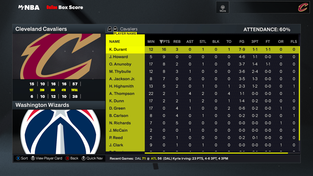 | D. Powell | DNP | 0 | 0 | 0 | 0/0 | 0/0 | 0/0 | 0 | 0 | 0 | 0.0 |